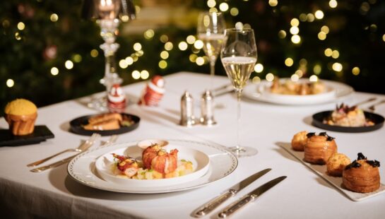 Veal fillet cooked at low temperature, rich Christmas spice jus, Alsace saffron-infused risotto, vegetables