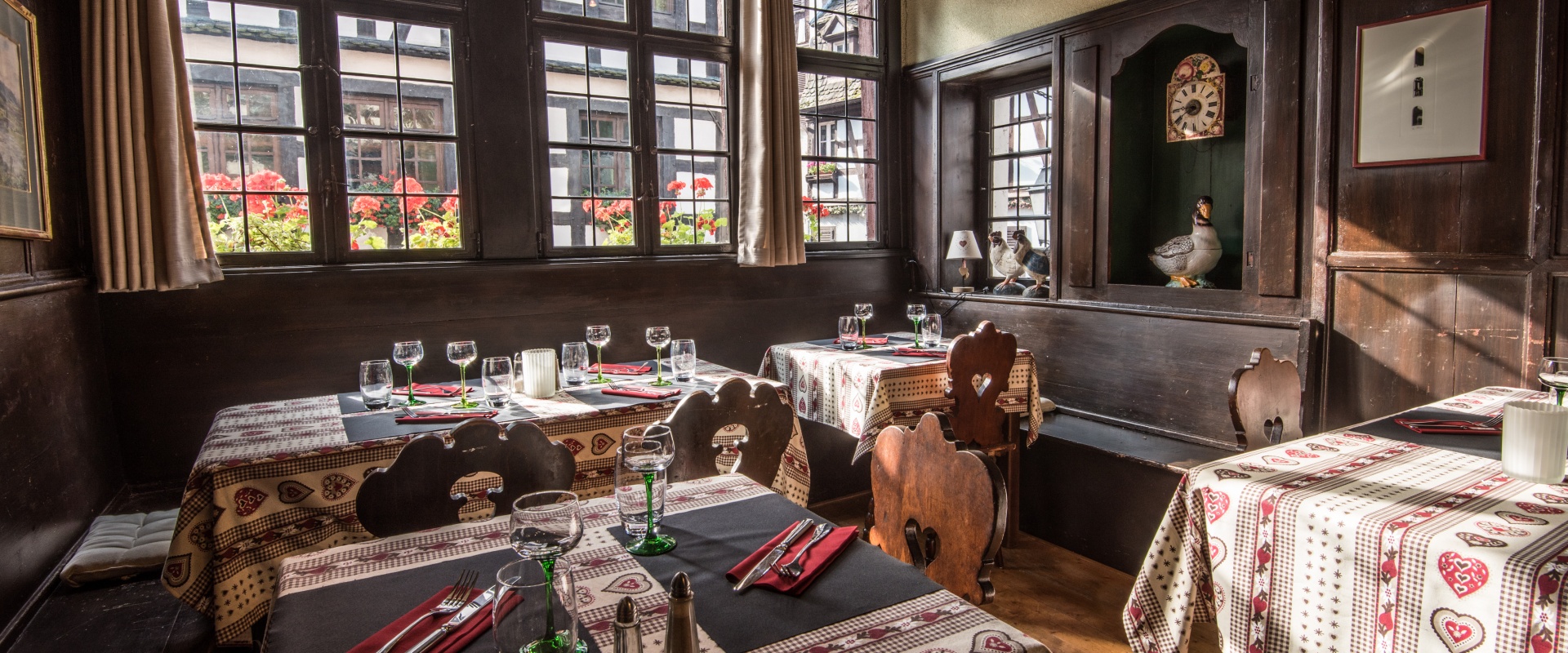Laissez-vous dépayser en goûtant à nos délicieux plats typiques dressés dans un service Henri Loux sur une nappe en « kelsch ».